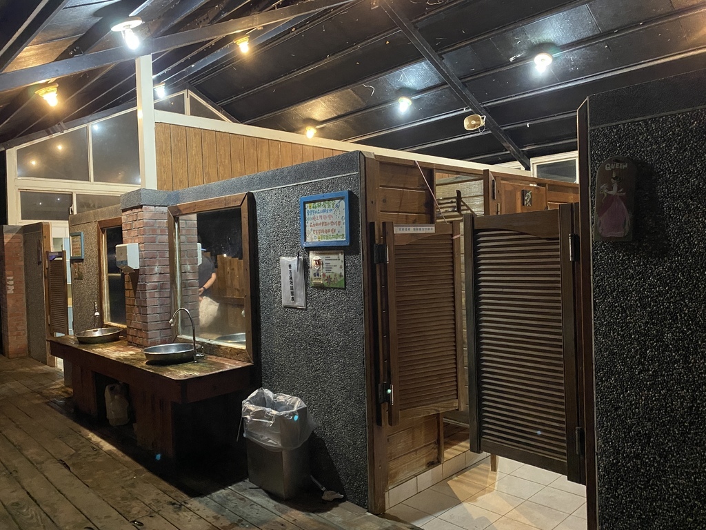 為木質設計的建築,有男女獨立分開的盥洗空間