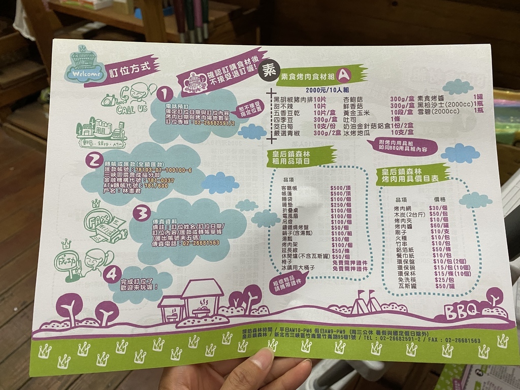 炭火派對:歐式BBQ、日式BBQ場地費$1000元+清潔費$1000元=$2000(訂購森林烤肉食材組則免收清潔費)