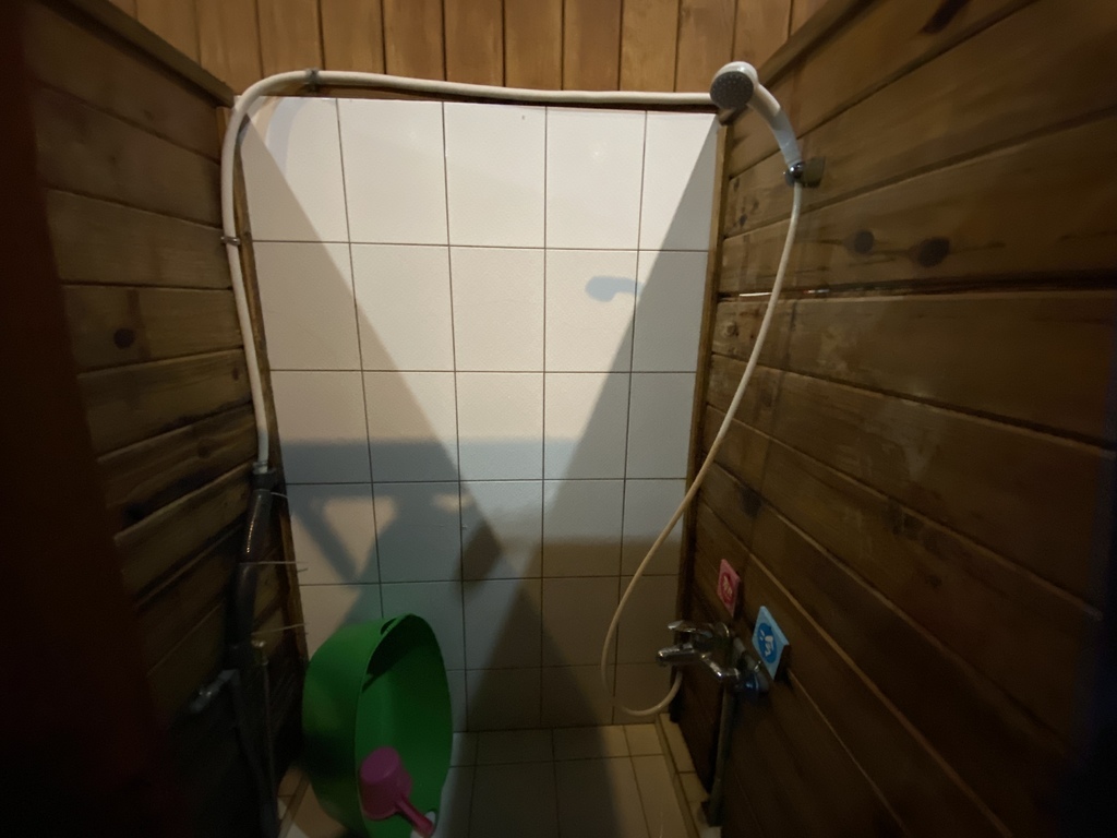 因為隱私問題,這邊就只提供無人的單一空間分享給大家了,盥洗室有淋浴設備及冷熱水,另有臉盆及水瓢,盥洗起來算是方便!