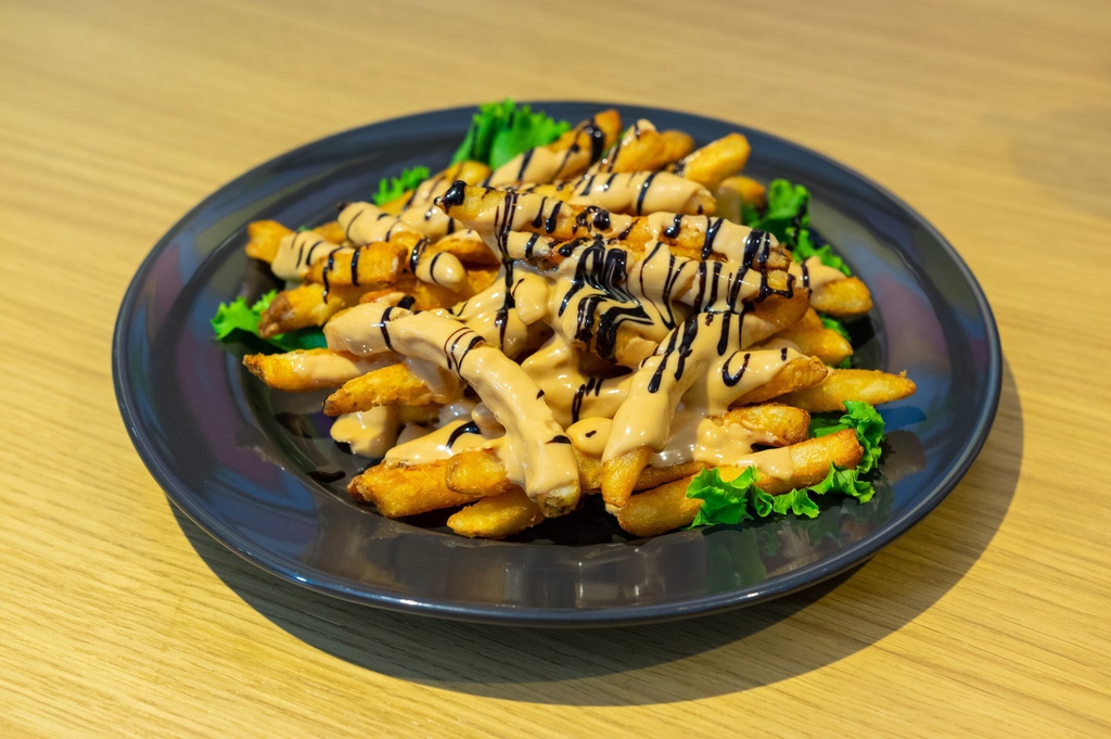 這也是一道甜鹹料理,有別於一般吃脆薯都是加番茄醬的印象,這裡用花生醬加巧克力醬的搭配,口感上真的很特別!