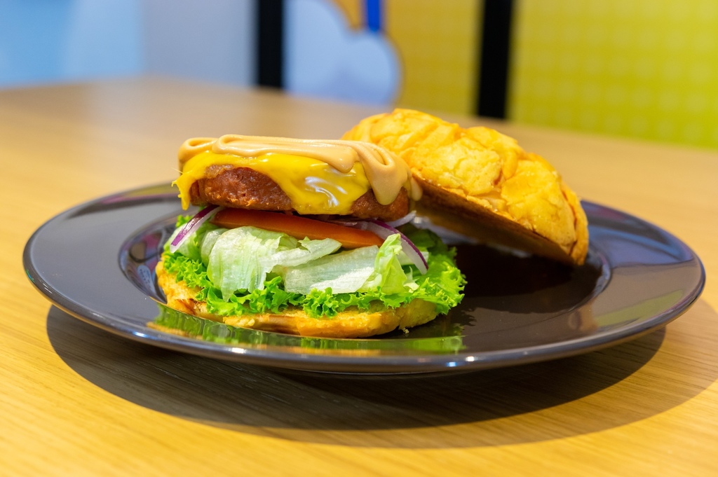 漢堡肉的部分是使用未來肉(植物肉),看起來超擬真很厚實!