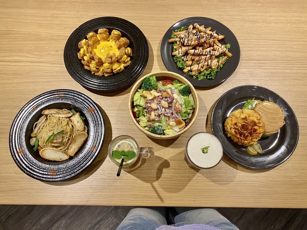 蔬食者來美式餐廳用餐不怕肚子餓,可以跟我一樣點了滿滿一桌美式蔬食料理,真的超級滿足啊!