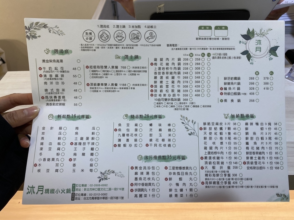 接著來看看沐月精緻小火鍋的店家菜單吧!
