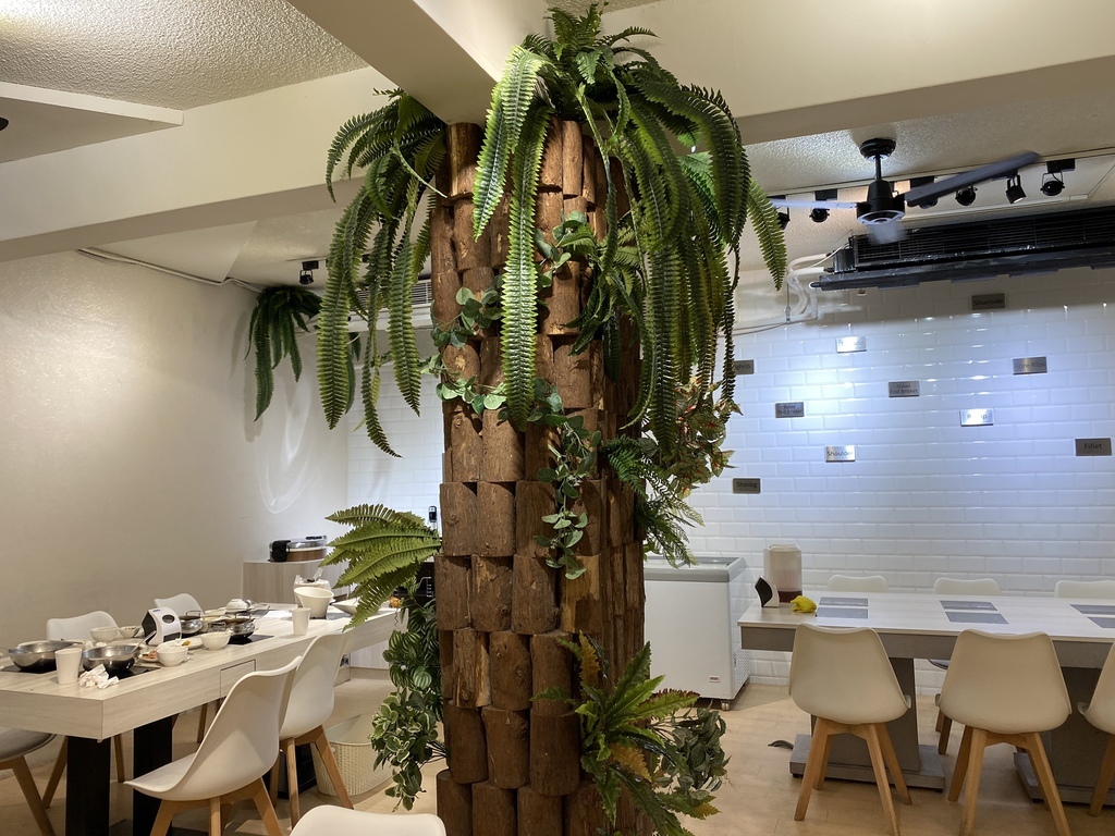 布置許多的仿植栽造景,讓人有種真的在森林裡用餐的錯覺!
