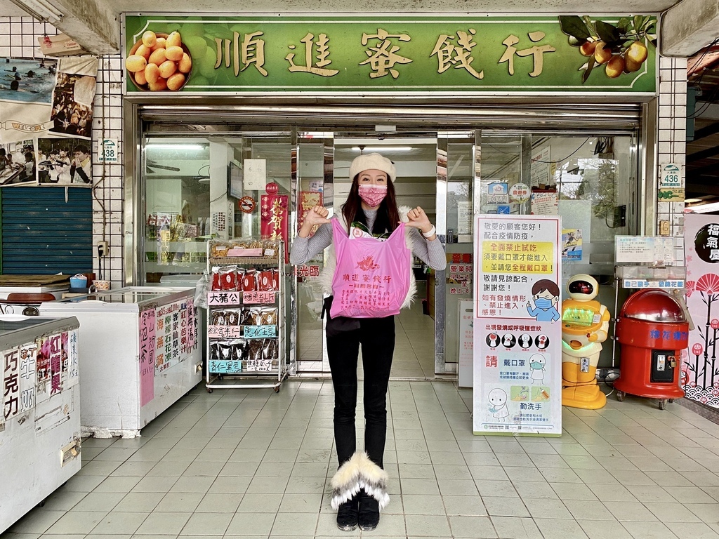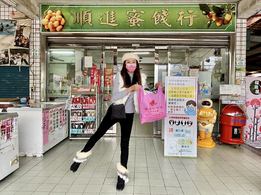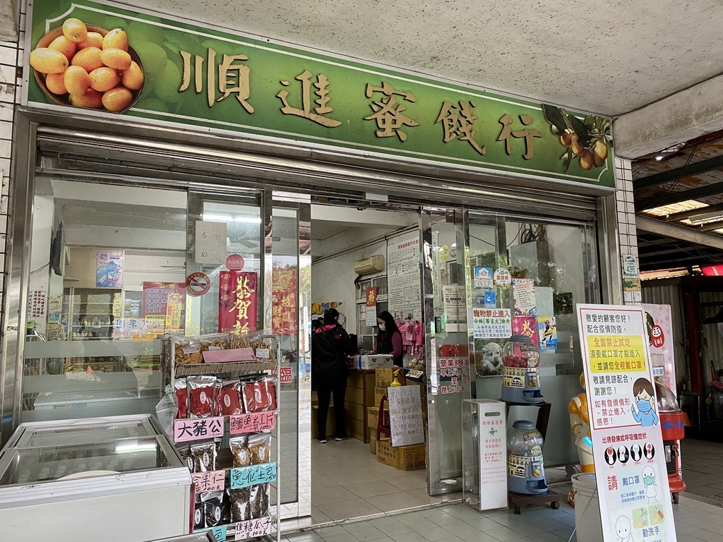 順進蜜餞行店家門口,因應政府的防疫政策,所以進入店家一定要戴上口罩喔!