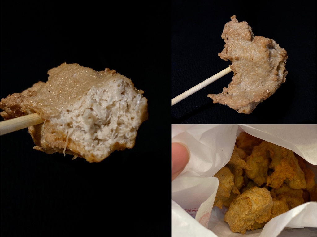 這是全素的喔!外皮炸的算是酥脆,裡面還保有些許水份,吃起來不會太乾,整體吃起來的味道不錯,覺得是一道可以嘗鮮的素食炸物,沒想到鹽酥雞真的有素食版本耶!