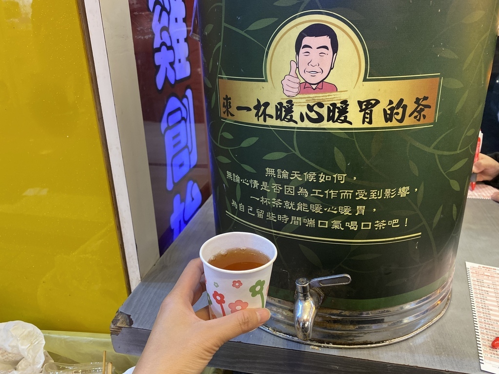 尤其這家台灣鹽酥雞人潮總是絡繹不絕,一定是需要排隊的啊!而在這家台灣鹽酥雞大直總店有特別在門口擺放了一桶自取式的茶水,提供給排隊等待取餐的客人做取用!