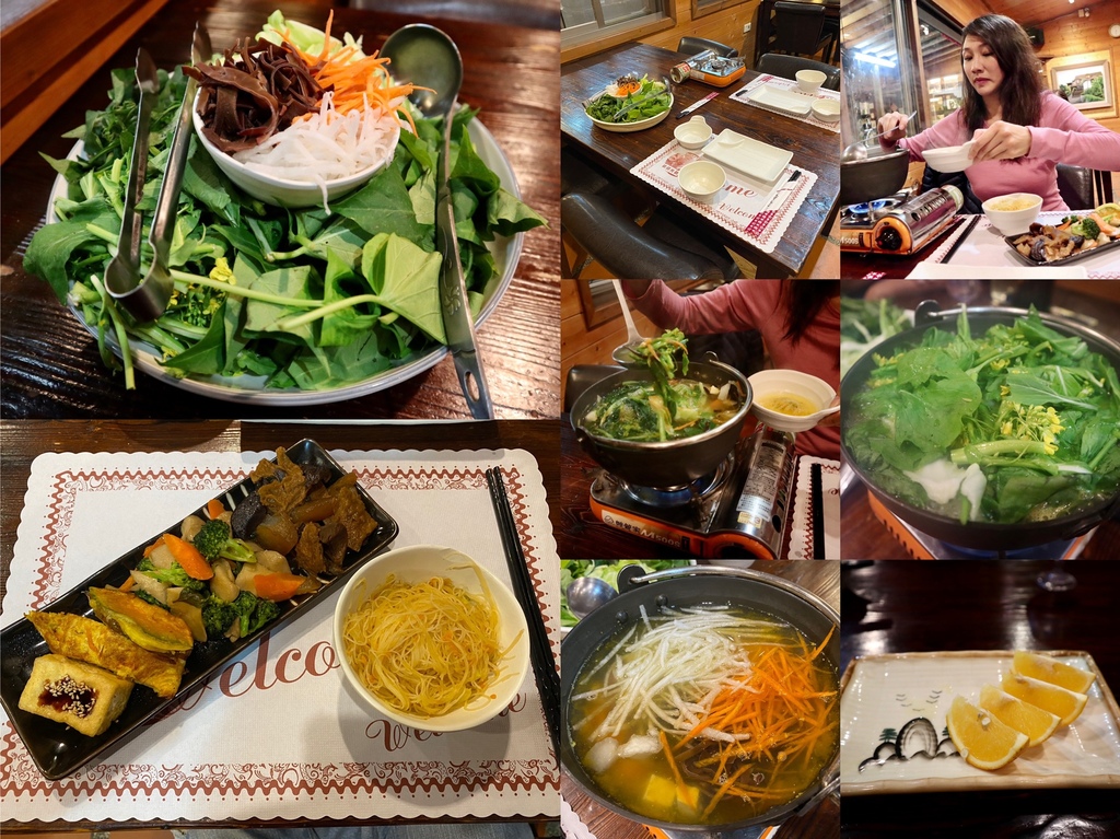 我的部分有先告訴素食需求,飯店也可以客製這樣的素食餐點,有趣的是提供的鍋物,竟這一大盤的香草野菜,真的是健康又均衡啊!