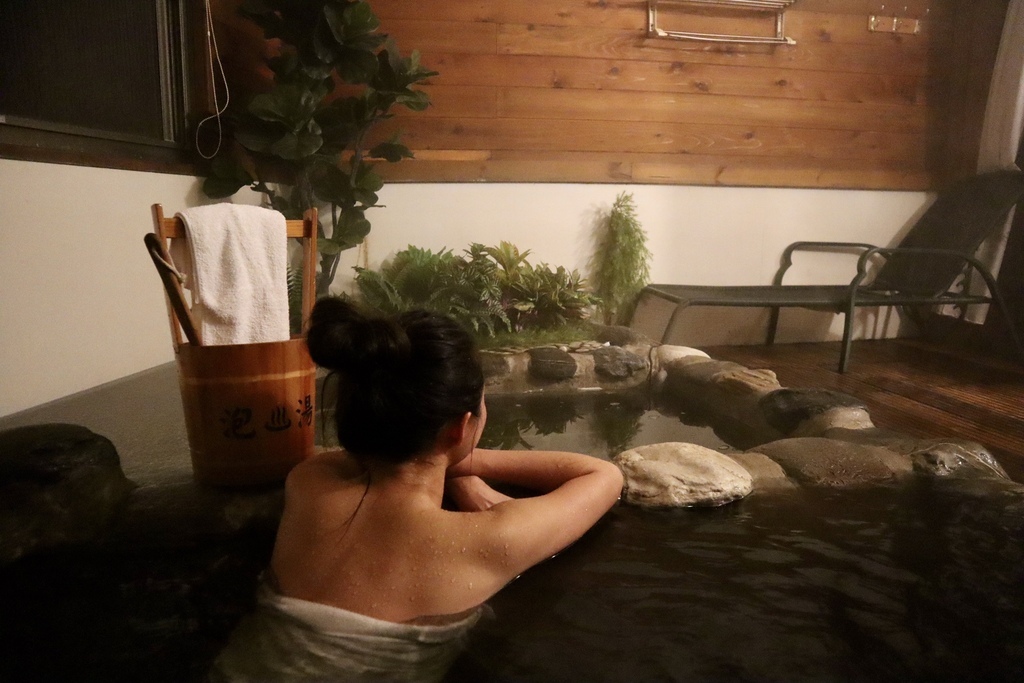 中間的隔間把房間及溫泉湯池作區隔,這樣的設計算是有隱私性,實在很貼心!