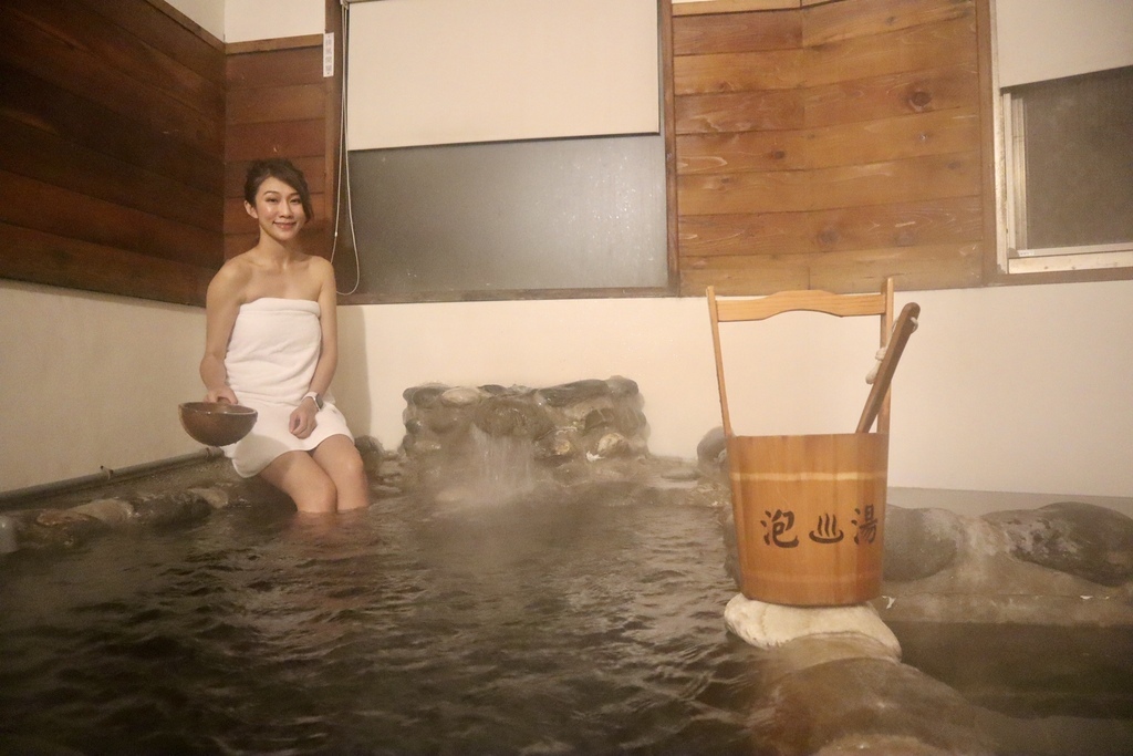 而溫泉水質屬硫酸鹽氯化物泉,聞起來有淡淡的硫磺味,其更富含滿滿的礦物質,泡起來身體會滑滑的!