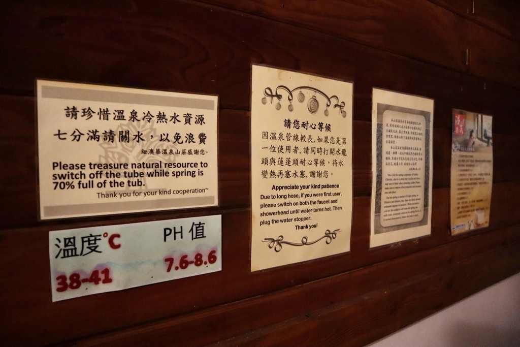 另外山莊中的溫泉特地使用加熱器做加熱,因此能保持在約46度的恆溫,客人要泡溫泉時,並不需要另加熱水做加熱,就可以享受天然原湯,所以直接在房內放溫泉水就可以泡湯囉!