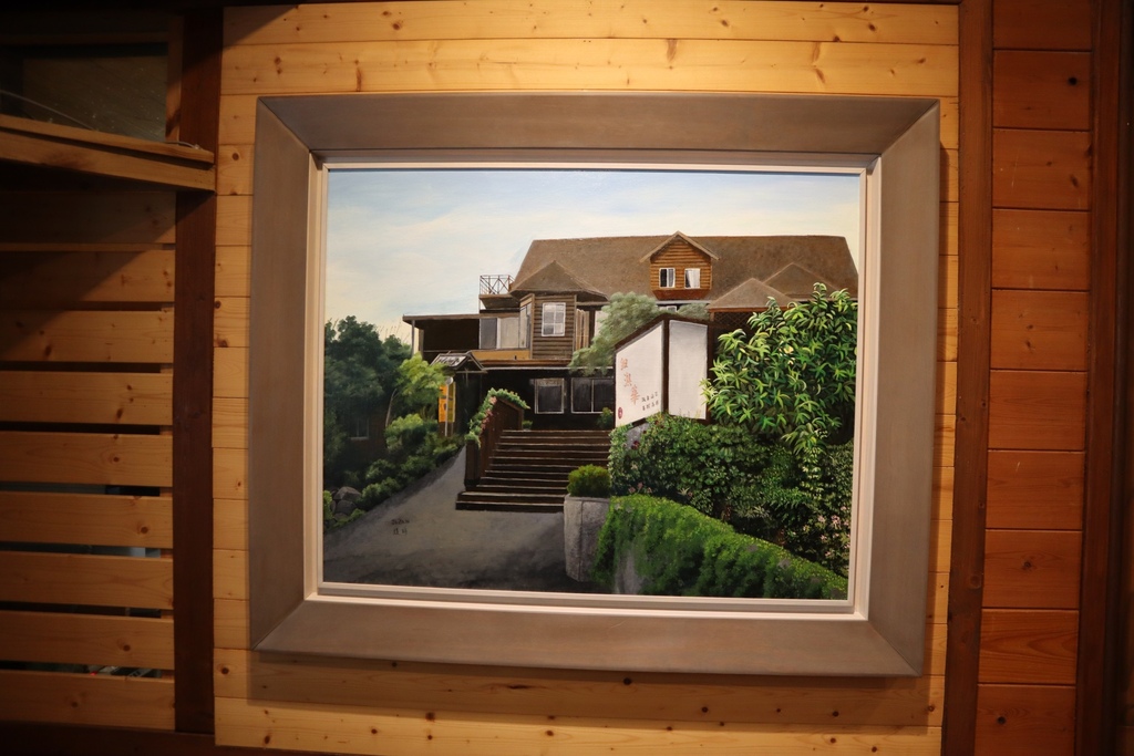 另外發現了這幅非常擬真的紐澳華溫泉山莊油畫,如果不仔細看,真的要以為它是照片!