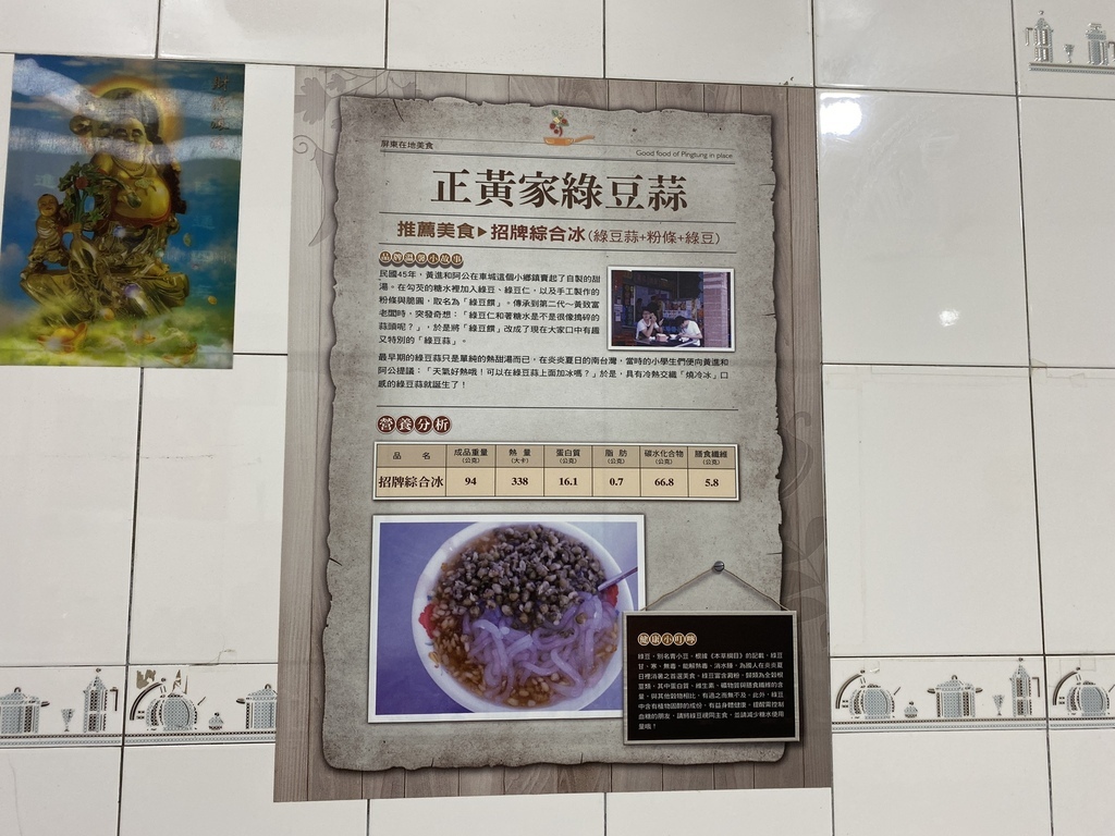 牆上也有正黃家綠豆蒜屏東在地美食的介紹