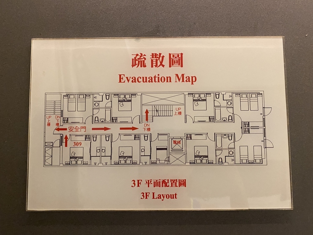 進門的門上有這樣的樓層配置圖,三樓共有九間客房