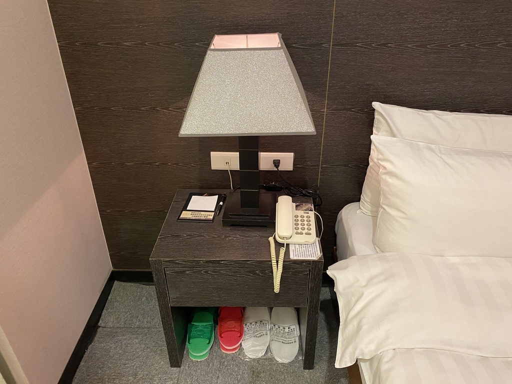床的兩側都有檯燈,拖鞋的部分有紙拖鞋和一般拖鞋