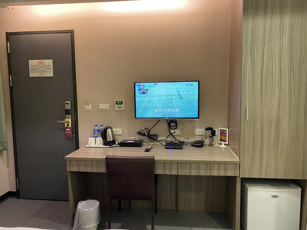 備有書桌、一台液晶電視、衣櫃,但不得不說桌子上的線材收納真的很不美觀啊!