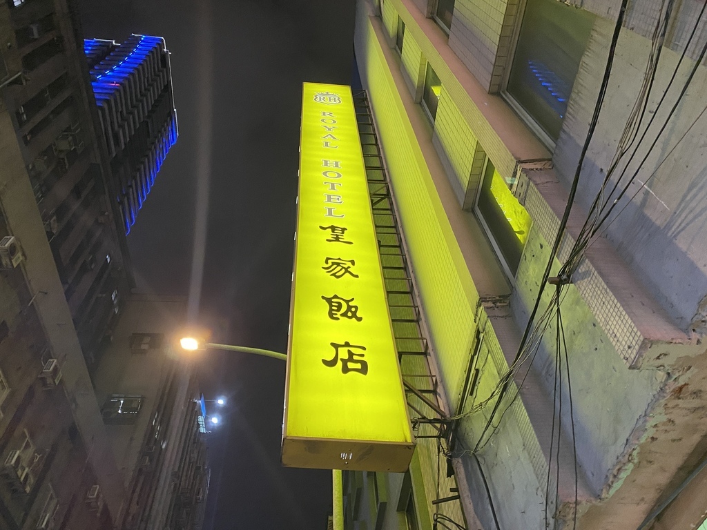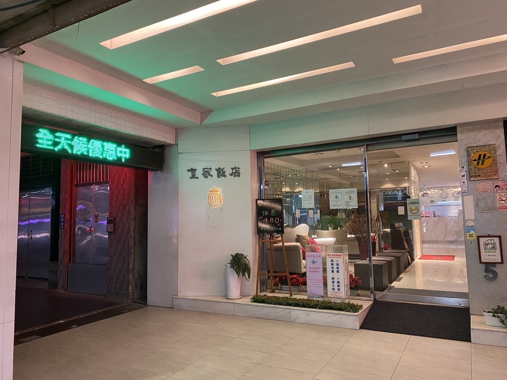 皇家飯店的外觀有著亮黃色的招牌,鄰近也有不少的飯店,像在皇家飯店的右手邊就是我先前跟大家介紹過的新驛旅店台北車站一號館。