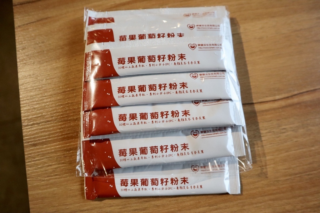 餐點的部分需另加10%服務費,結帳時還有贈送這樣的保健食品,在店內參觀後才知道原來品牌還有經營自家的生技產品,當然這些在日光綠築也都買得到喔!