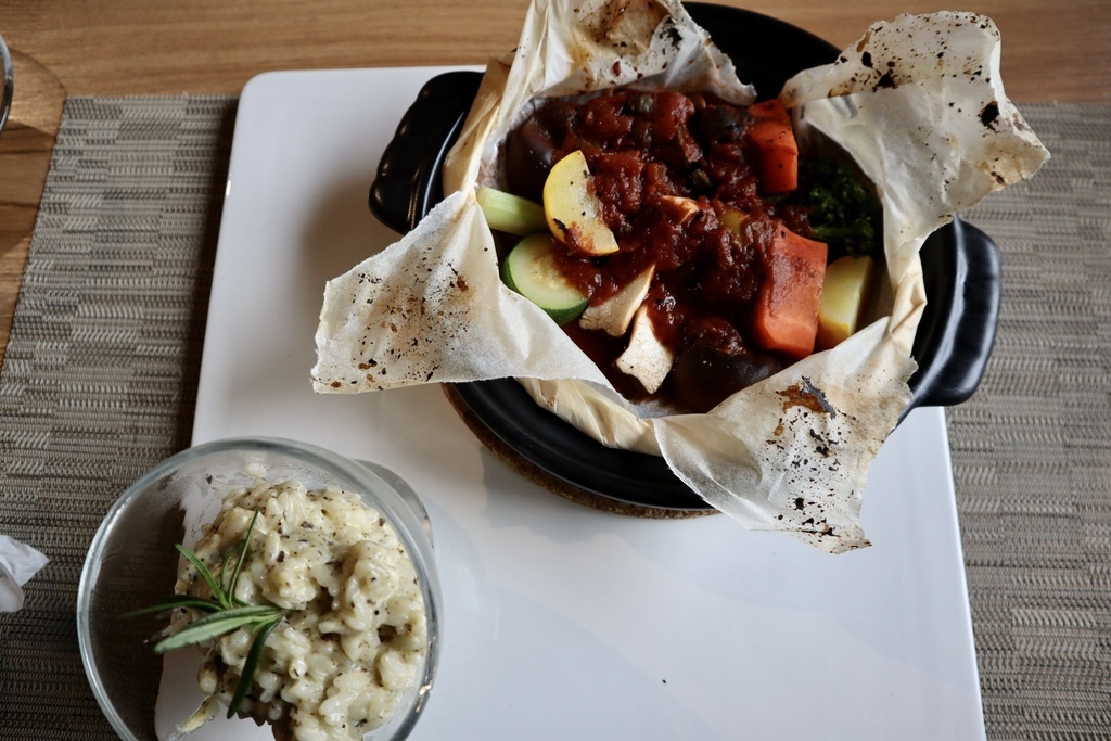 只是這裡提供的燉飯份量真的偏少,而這道番茄為主的料理顯得酸味較多,在搭配上總覺得有些失衡,導致需要多喝點水才能品嘗,吃完這道料理也沒有感覺到飽足感,這裡覺得是這次用餐整體上最可惜的地方。