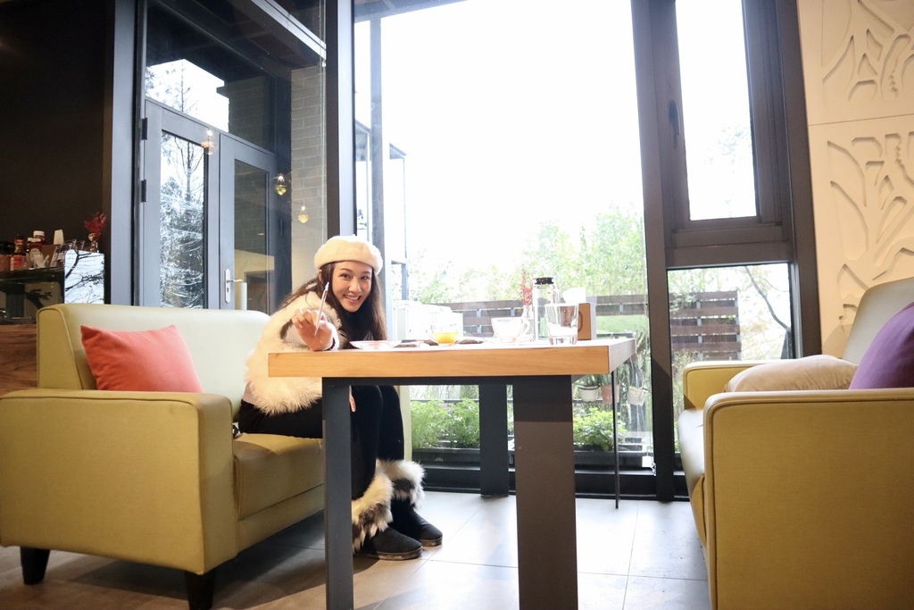 而我最後選擇的位置是這樣的靠窗沙發座位,覺得可以邊用餐邊欣賞窗外的風景是很棒的時光