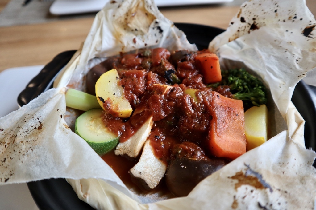 撕開後裡面是以番茄為主的蔬食料理,濃郁的義式風味瞬間撲鼻而來