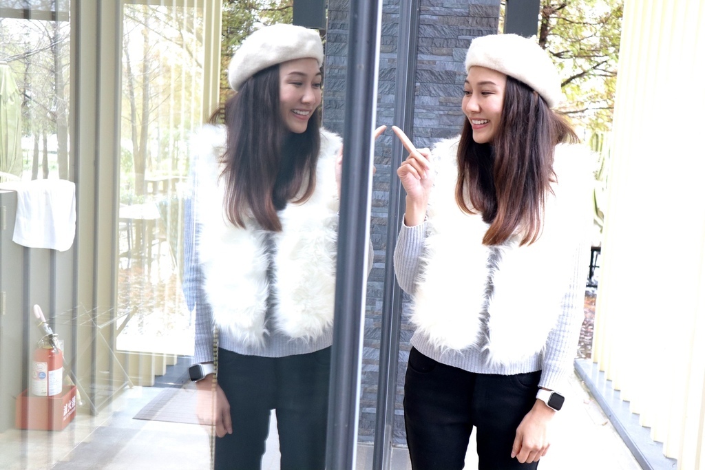才正說要拍照,結果屋外又下起了大雨,於是只能這樣跟鏡中的姊妹合照啦><