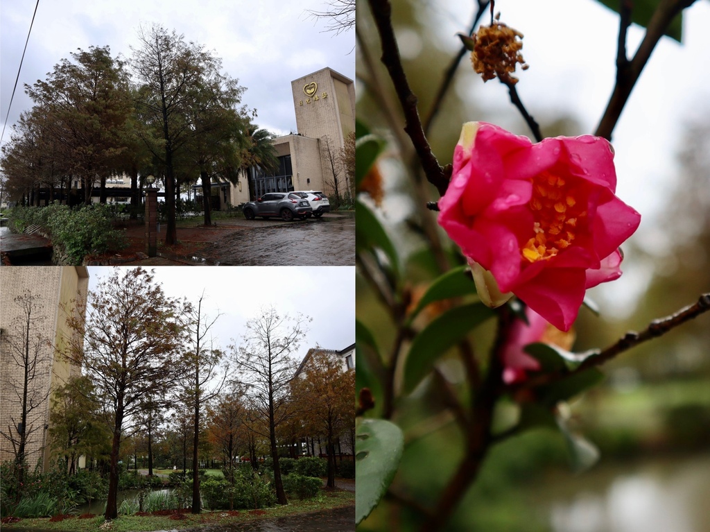 日光綠築的外圍有庭院,可以把車子停在這裡,一旁還有許多落羽松,覺得很適合賞景散步