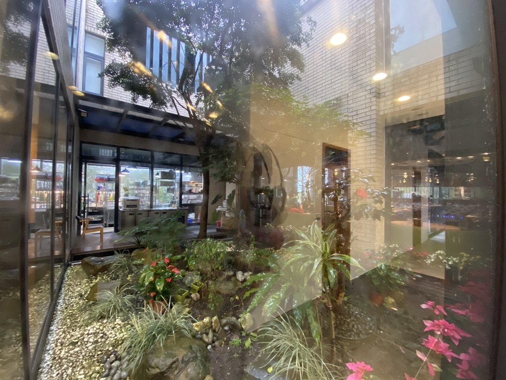 餐廳內有一處玻璃屋天井的設計,看起來就像是一個小花園一樣