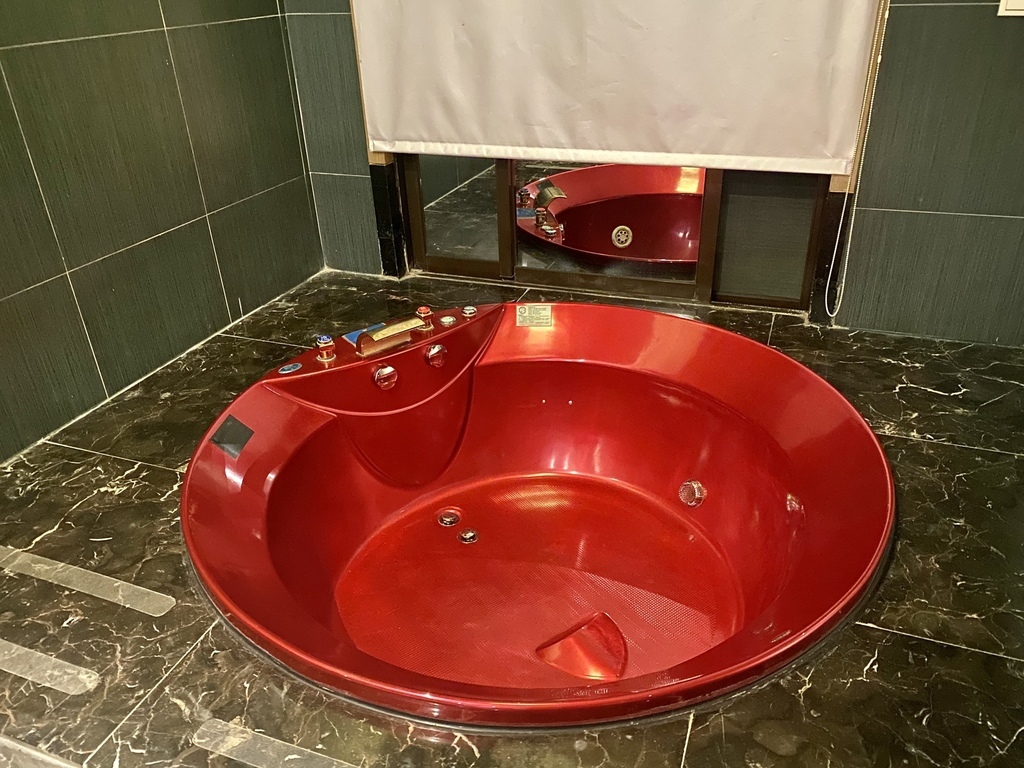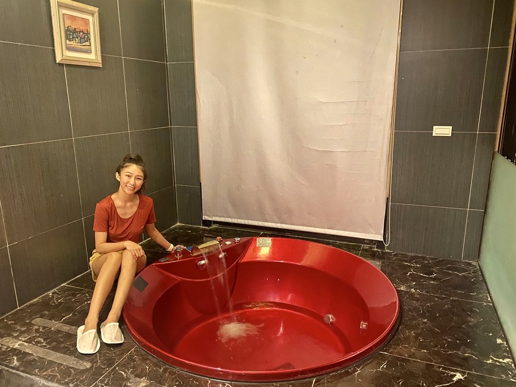 第一次看到這麼鮮豔的紅色浴缸呢!
