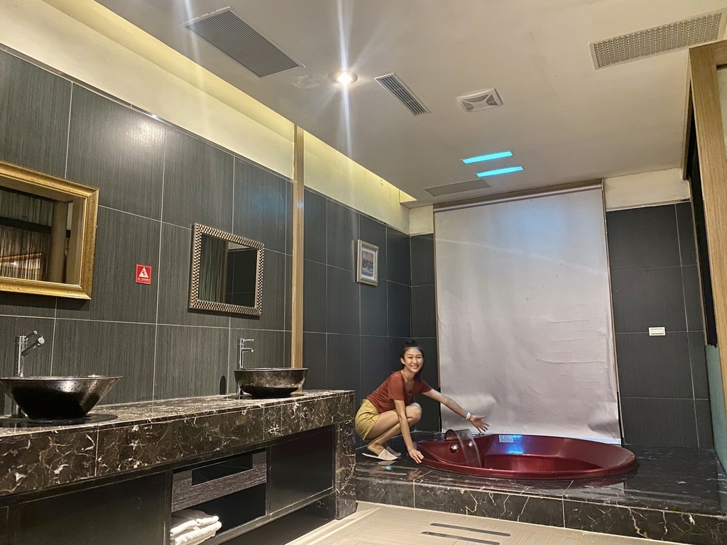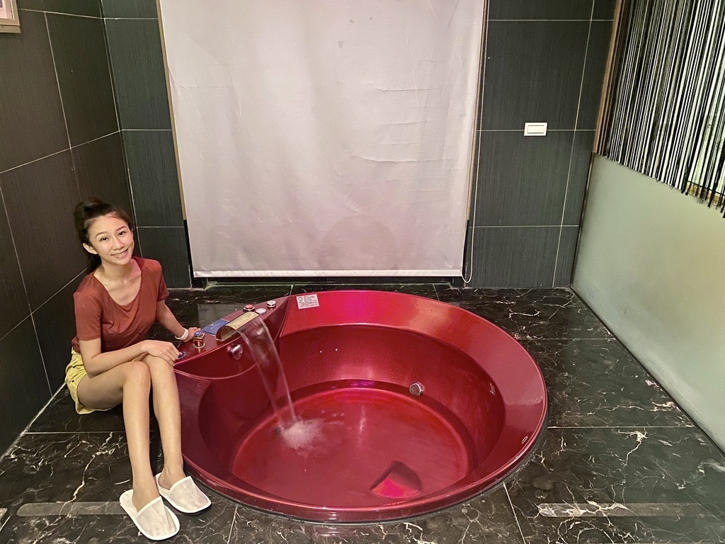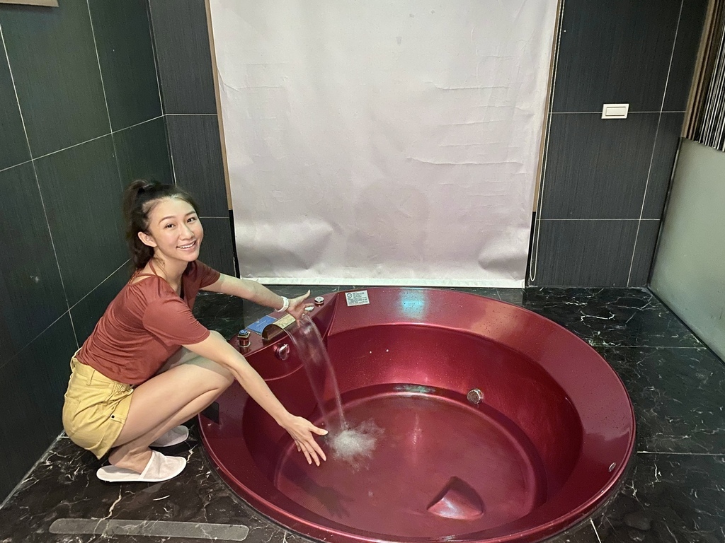 圓形浴缸的大小很不錯,也有簡易的按摩模式可以使用