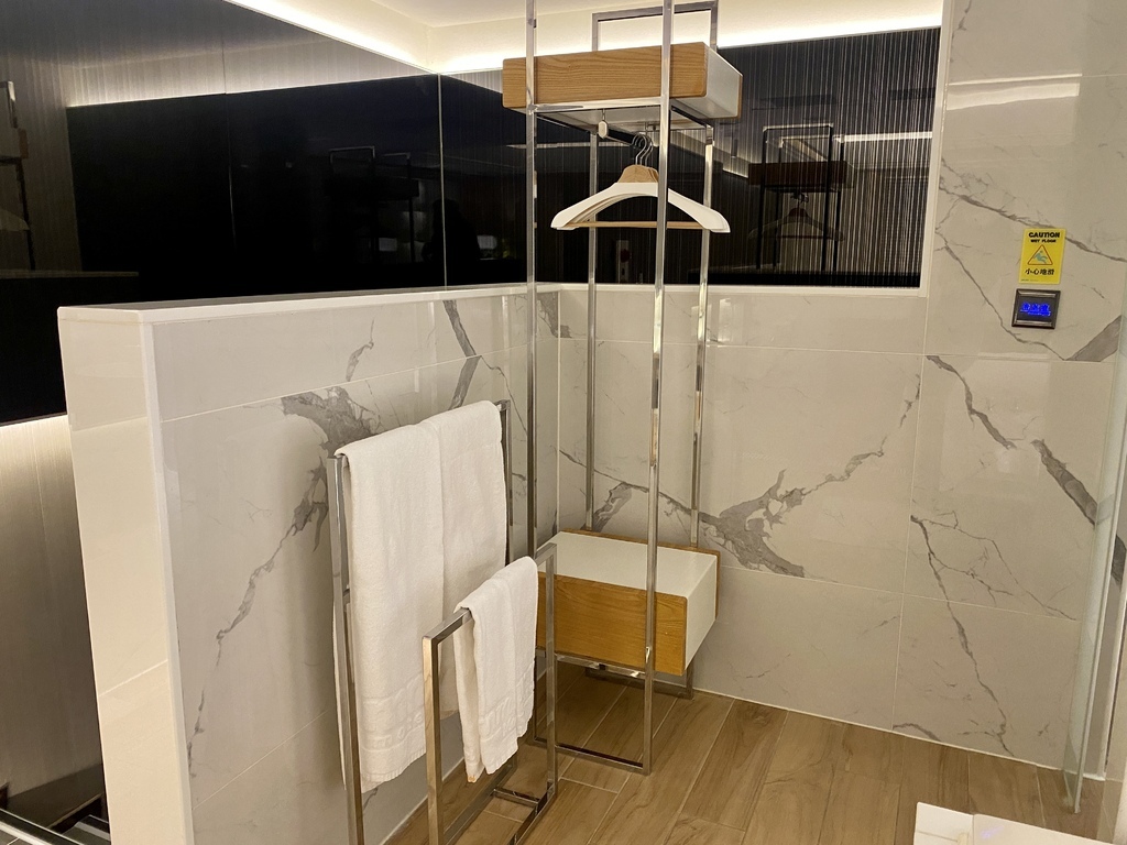 一旁有這樣的開放式衣架區,旁邊則有大小毛巾可以使用,我自己很喜歡這樣掛毛巾的方式,使用起來很便利,不需要擔心用完沒地方掛會乾不了無法使用的問題