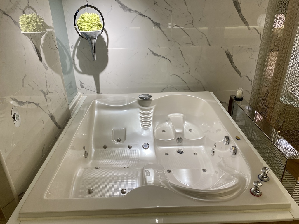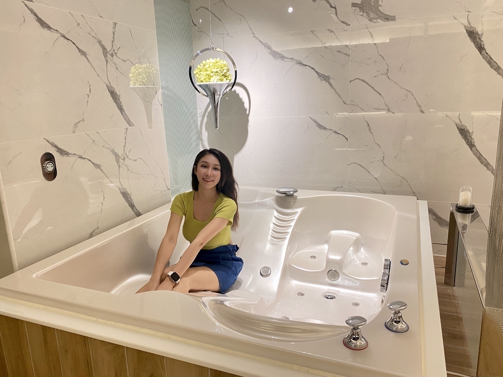 在客房設置了這樣的超大的雙人SPA浴缸,看起來有質感又白淨,夫妻情侶或是閨蜜入住可以兩個人一起泡澡,完全不擁擠,而且躺下去的靠背設計真的很舒適,真的會不小心舒服到睡著呢!