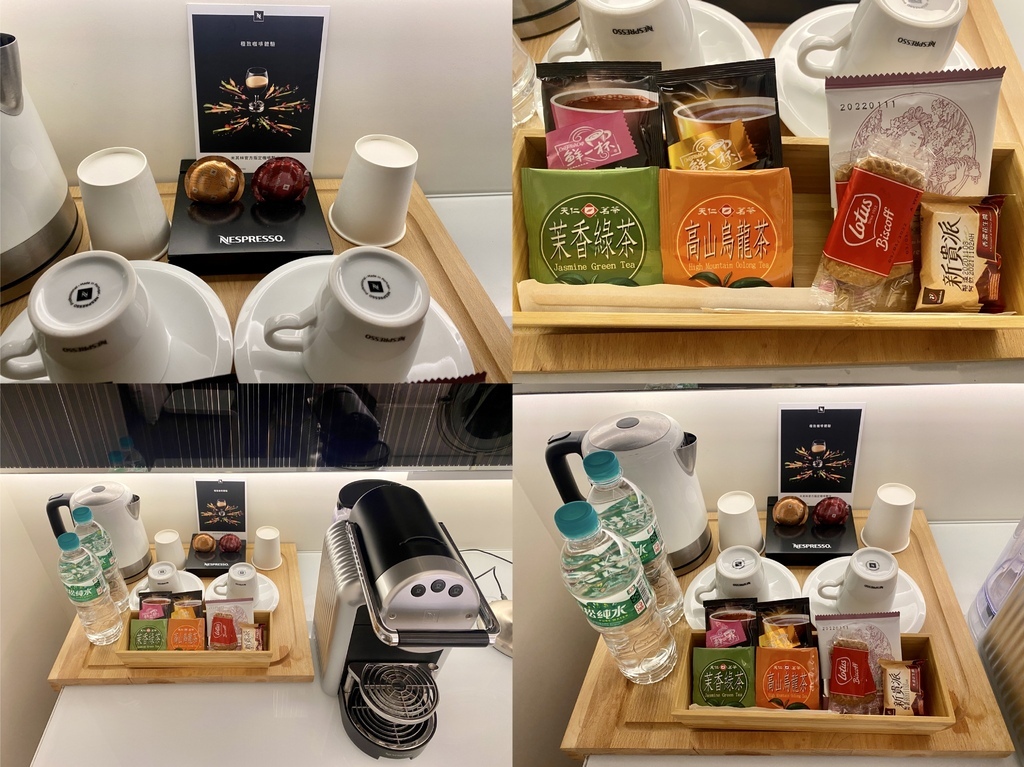 有免費的礦泉水、咖啡、茶包及點心,還備有荷蘭公主快煮壺及雀巢膠囊咖啡機,在客房就可以輕鬆的享受咖啡時光喔!