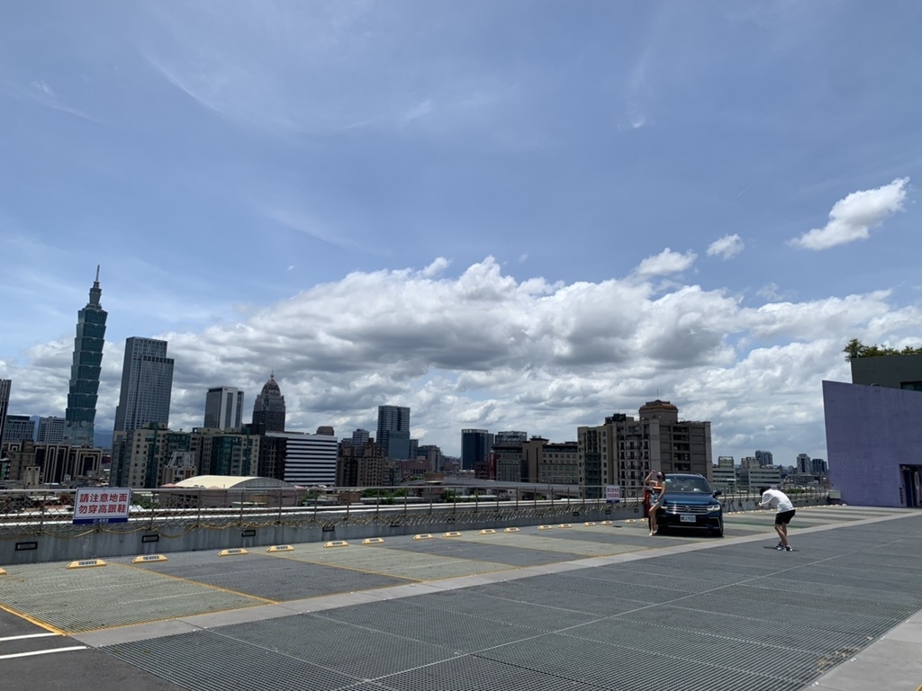 一般而言,頂樓都是車主最不想要停的位置,因為風吹日曬距離又遠,但在八德立體停車場的頂樓卻很搶手熱門,我來訪的這天平日,時不時有許多看似車商雜誌的攝影團隊上來。