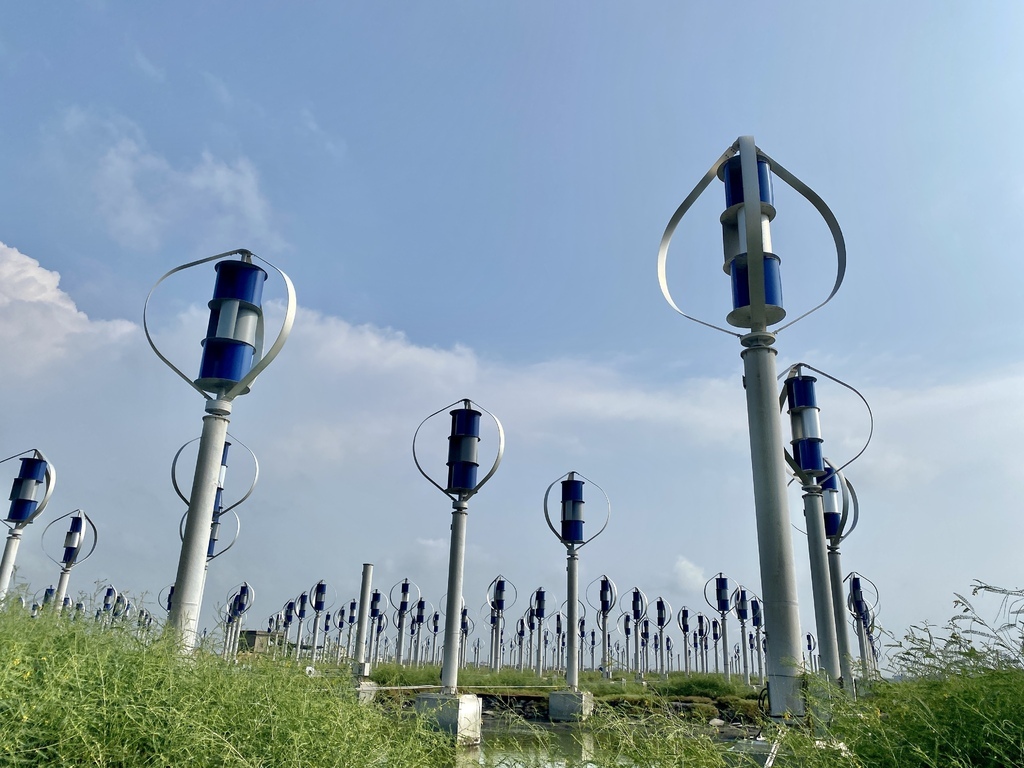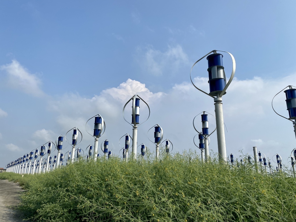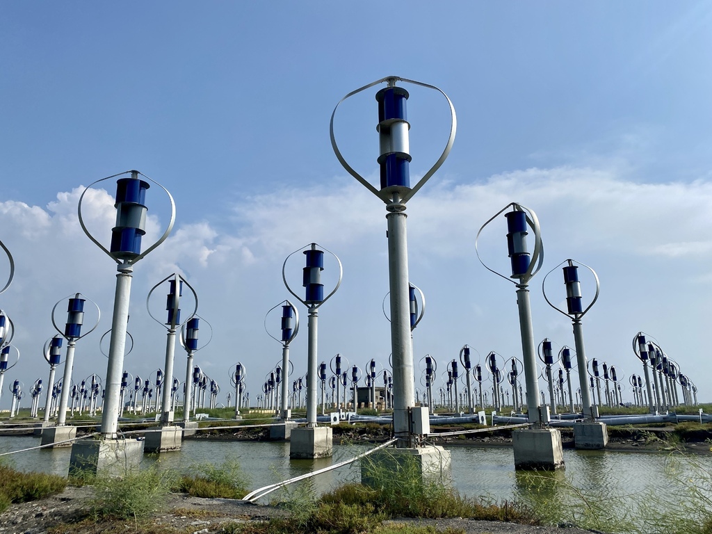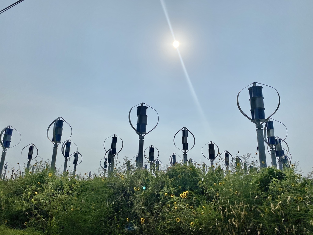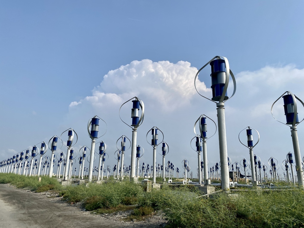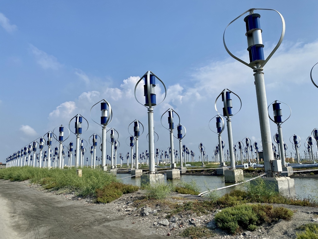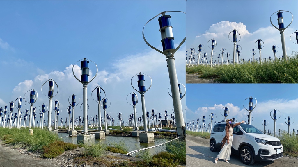 眼前看到的風車林其實是隸屬於台灣電力公司的風力發電站,用途為蓄電用的風車,同時也是目前全世界唯一獲得認證的垂直軸小風車。