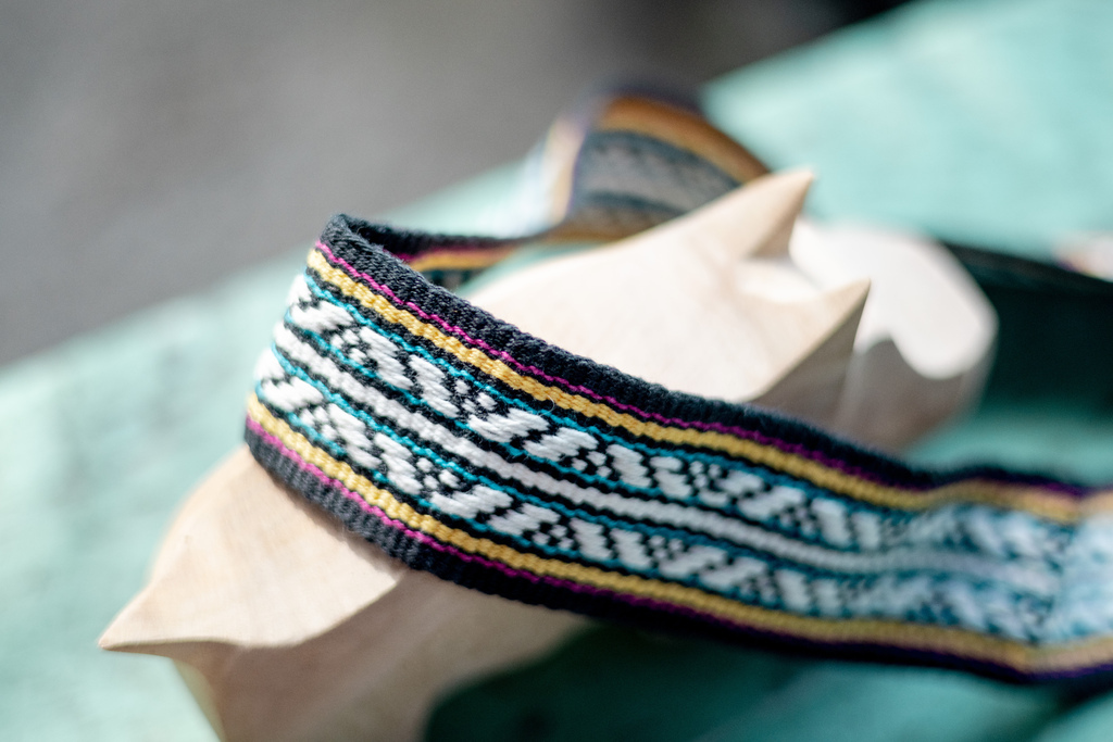 這條織布可以當頭飾也可以當腰飾等配件,仔細一看發現上頭的花紋真的很細緻,實在很難想像需要花多久的時間才能製成,這不禁讓我很珍惜每一個手工藝,都是獨一無二的心血結晶啊!