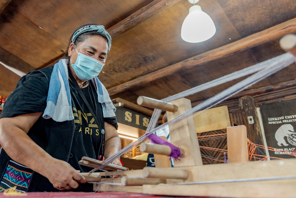一走進室內,發現有許多這樣的小型織布機,原來巴萬角有提供織布的手工藝體驗活動,上面有各色的棉線,可以拼湊出不一樣的紋飾。