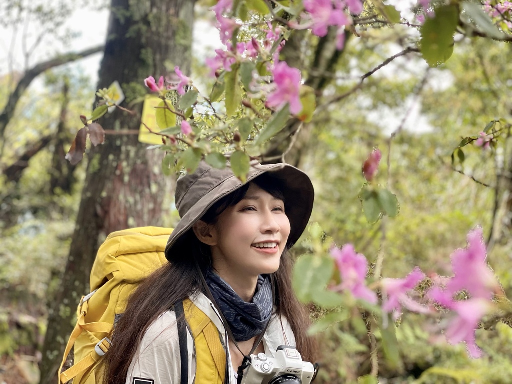 這杜鵑的高度較為高大,所以像我一樣跟它合照,拍起來真是太夢幻啦!