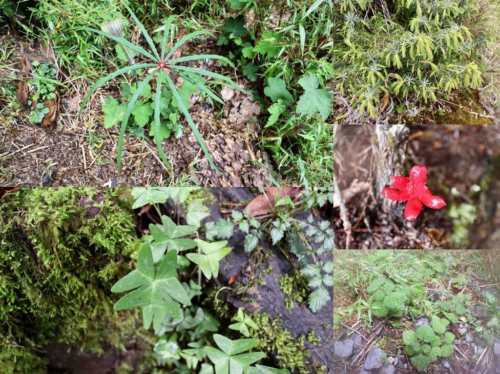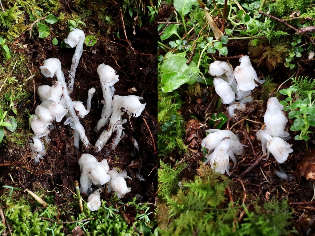 沿途發現步道旁就是「水晶蘭」,又稱「錫杖花」、「幽靈花」,花期為5~7月,常見於海拔1000~3000公尺的潮溼的土壤,為不行光合作用的腐生植物。