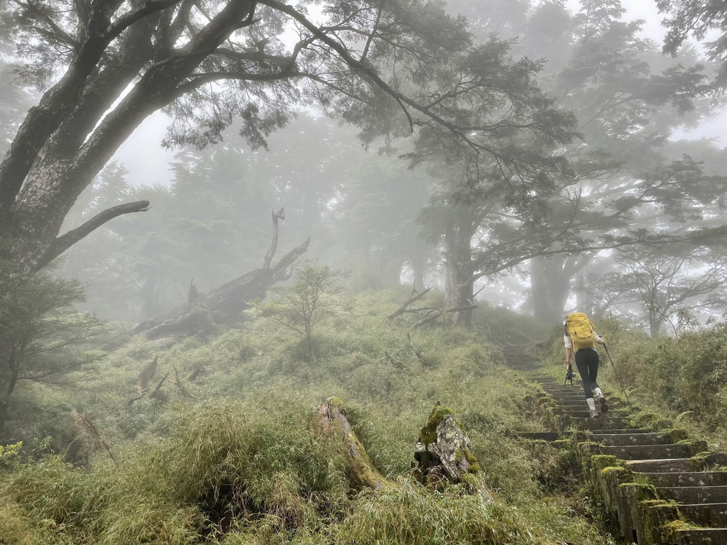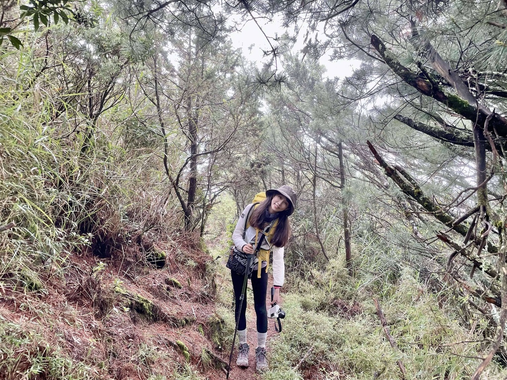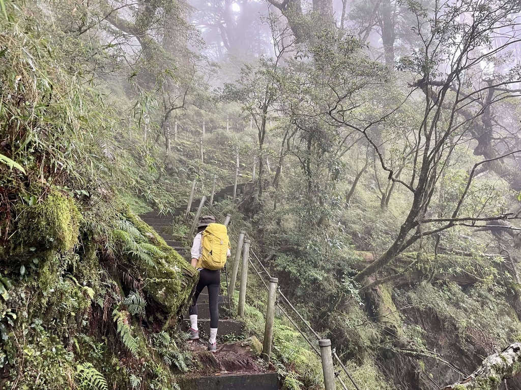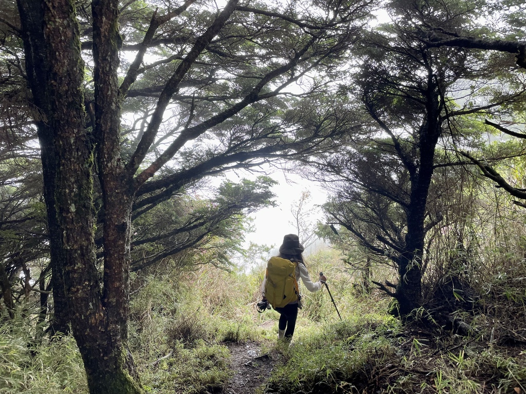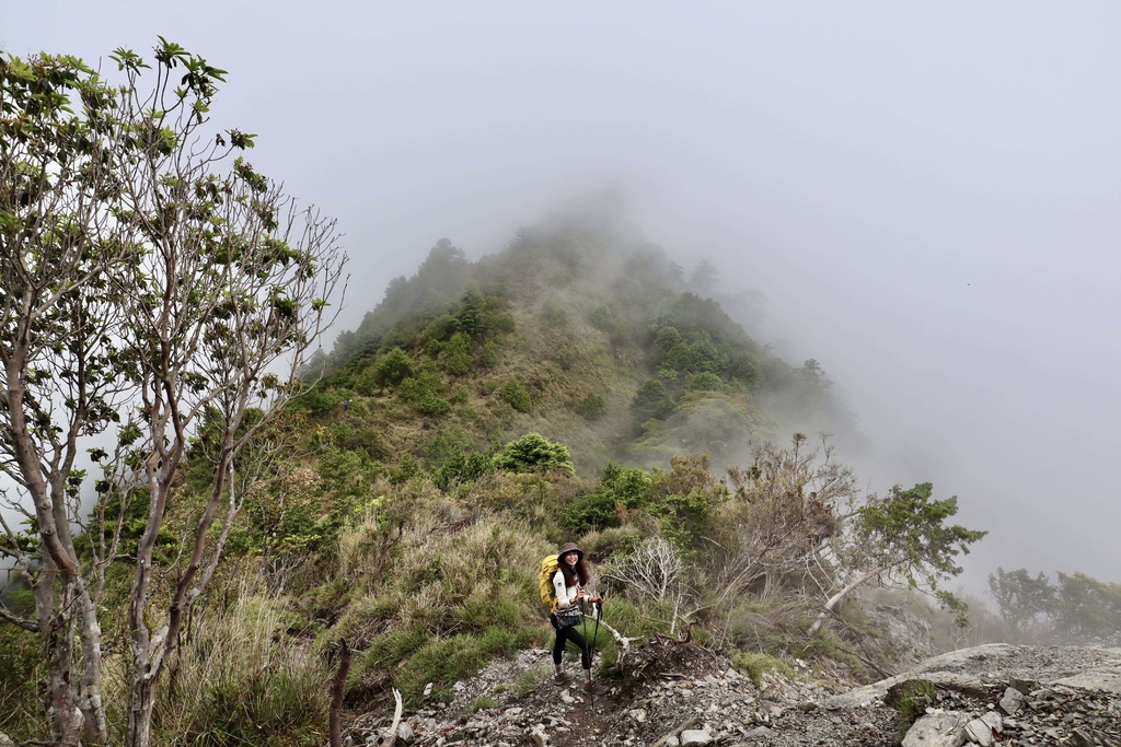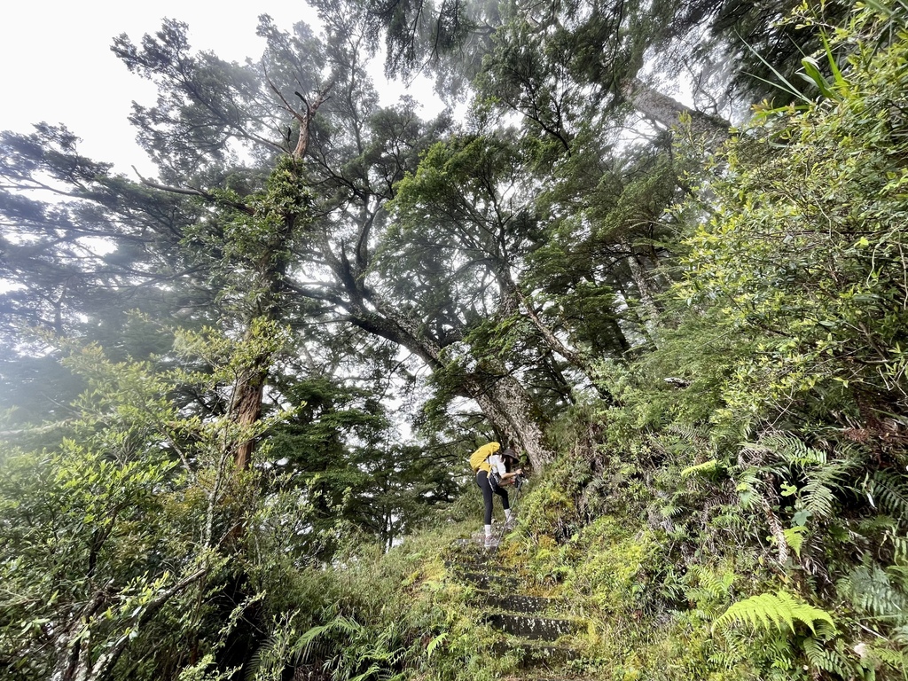 雲霧漸漸飄去,依稀可見前方的山頭,前方也正是必須翻越的山頭路線,陡上又陡下的路段,讓不少山友頻頻喘息。