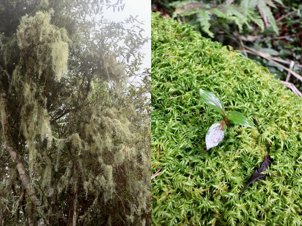 隨處可以看到滿滿的松蘿、地衣及苔蘚,像是鋪上綠色地毯及綠色衣裳,這樣的地貌也讓我想到我先前去過的坪溪古道,也可以看到這麼美的畫面。