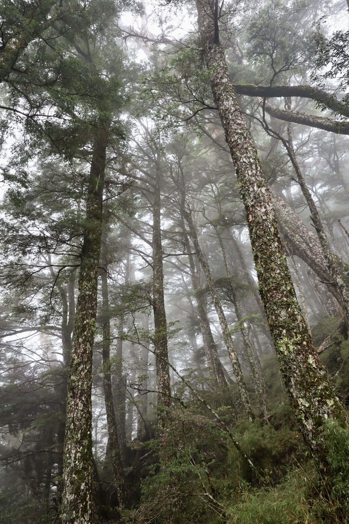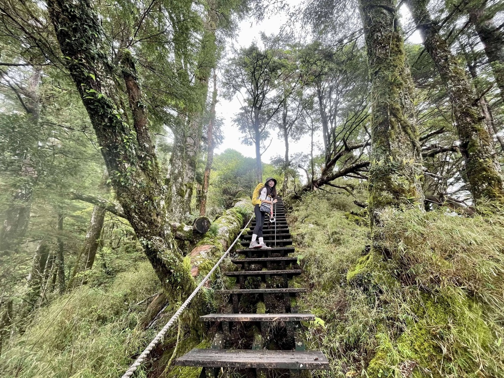 接下來有滿滿的木階梯,穿梭在高大的林木中,看起來很有意境