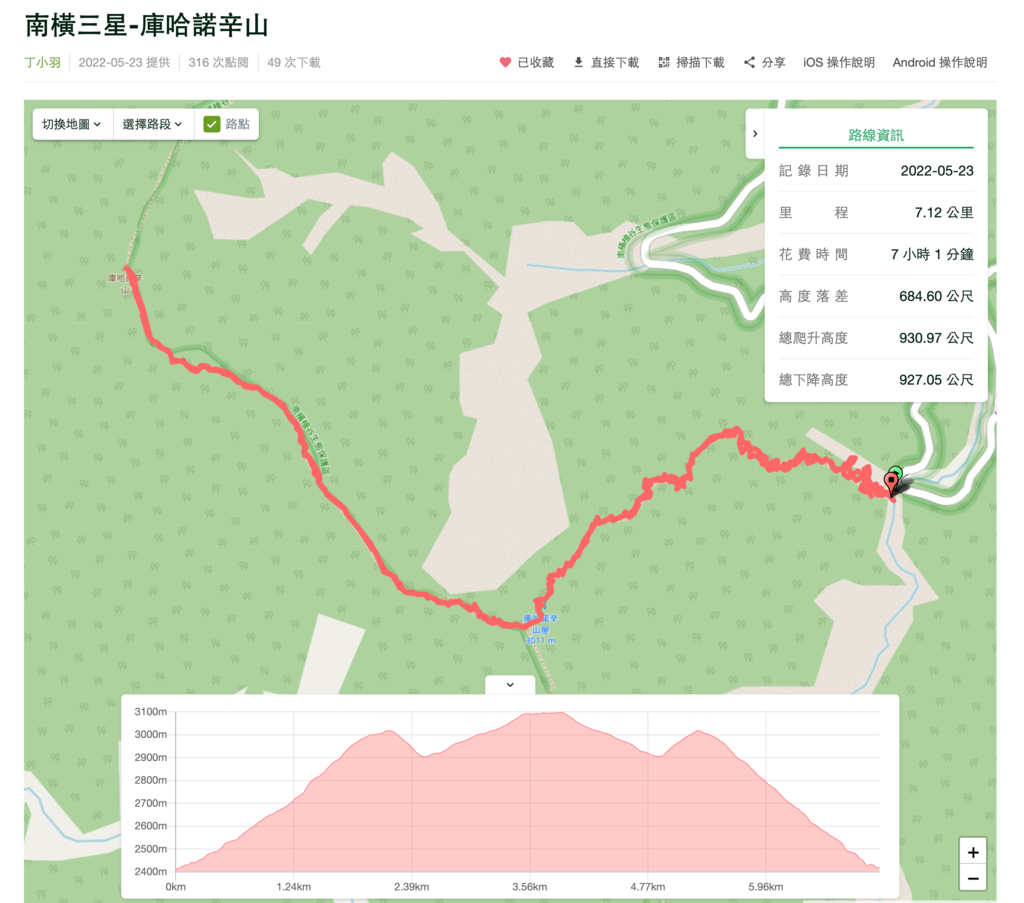 總之小羽這次庫哈諾辛山步道的路線,含休息加上拍攝的總時間約為7小時,這部份也提供給大家參考,建議大家可以多預留估算自己的補給及休息時間,相關資訊我在以下補充給各位,也希望這篇文章資訊對你們有幫助:)