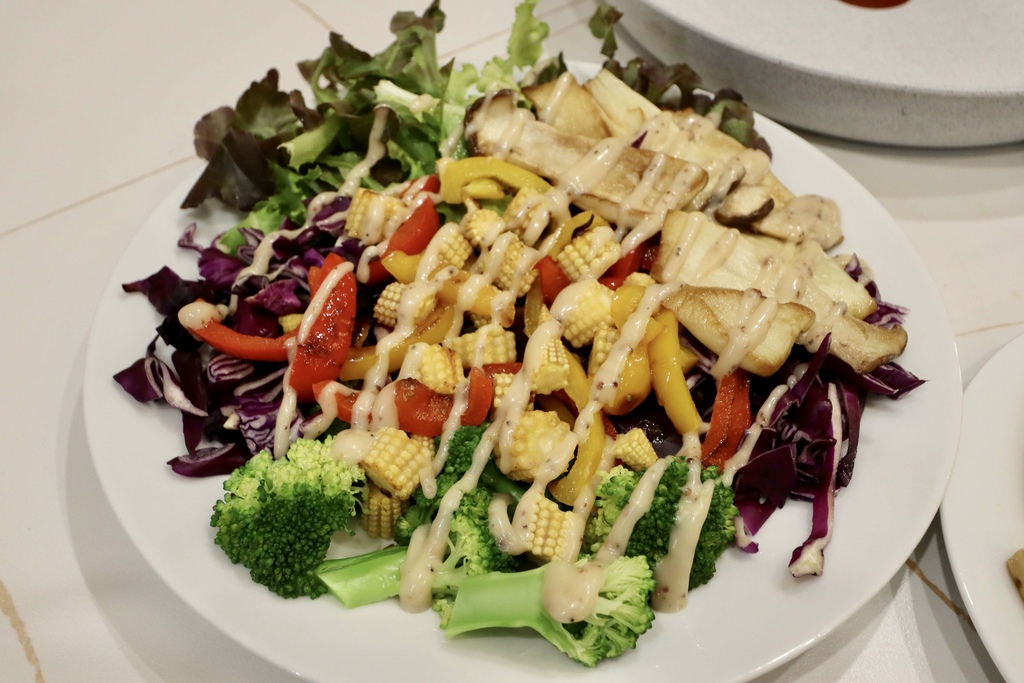 美味又繽紛的五彩時蔬溫沙拉馬上就完成了,這些都是當季新鮮的蔬菜,可別小看這一盤,吃起來真的很有飽足感啊><