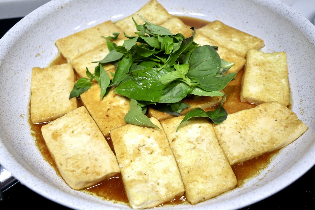 不到5分鐘,好吃又美味的中式塔香板豆腐就完成啦!